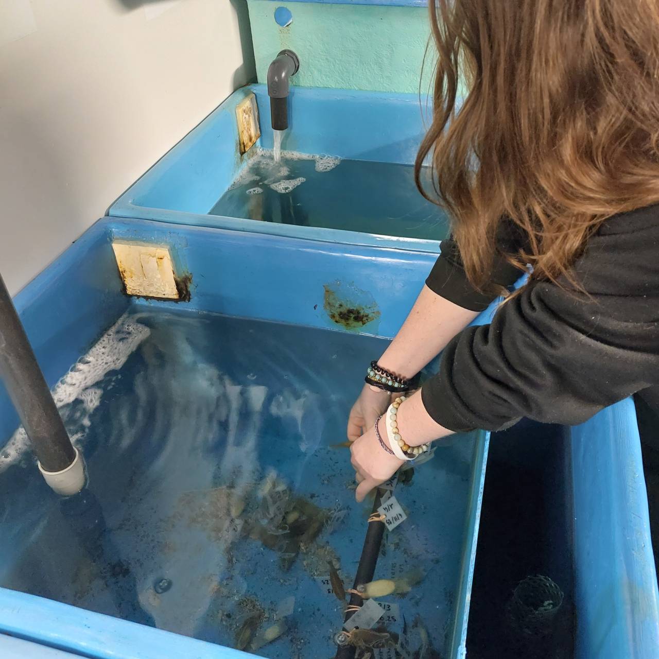 Chaque jour, elle surveille les pontes des roussettes, installe des supports de ponte, récupère les capsules, et suit le développement des œufs… jusqu'à observer la naissance des jeunes roussettes.