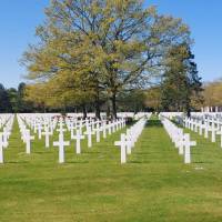 La matinée a débuté à Sainte-Mère-Église. Les élèves ont pu lever les yeux vers le célèbre clocher où le parachutiste John Steele est resté accroché. Ensuite direction le cimetière militaire américain.