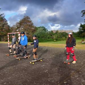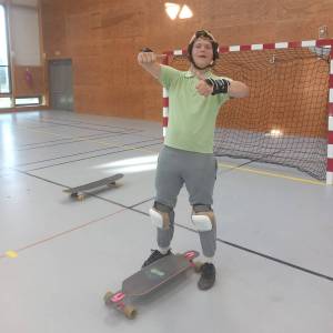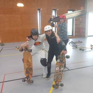 Durant 4 séances, le mardi soir, les lycéens résidant à l'internat ont pu profiter d'une initiation au longboard et à la slack line. Aurélien Seignet de l'école de sports de glisse itinérante Du Temps pour Glisser, enregistre "une progression éclair, bonne ambiance et motivation ! De la prise de vitesse, des courbes et des enchaînements de dancing au programme."